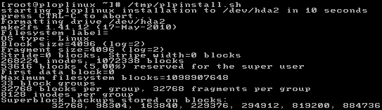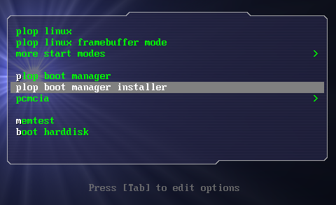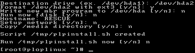 Now we can install Plop. For this, type “installplop”. Make sure you enter the right destination drive, in our case “/dev/hda2” and also make sure you don’t write anything to the MBR. Do not run “plpinstall.sh” !
