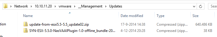 Now first download the VAAI plugin, cause VMware needs to know how it can offload the storage tasks to the Synology NAS. The plugin can be found here. When the download is finished, save the file somewhere on the NAS where VMware can also access it, for me it is a folder named __Management under the NFS share.