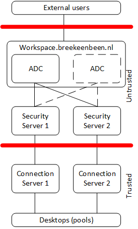 Below I will describe how you could set-up VMware Horizon View including the Blast protocol. I will focus on the outside connections, which means the security servers. The set-up consists of the following components;