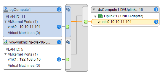 If you go to the distributed switch of one of the cluster you should see something as follows: