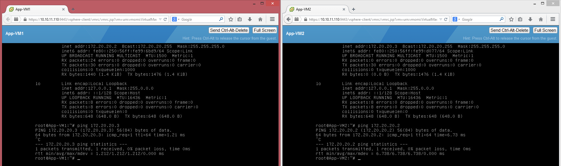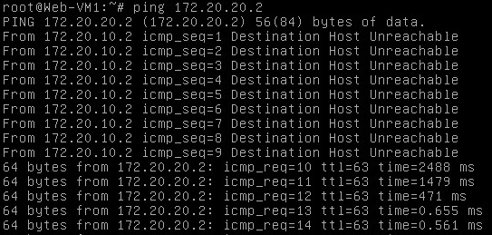 Before you click OK, open the console of the Web-VM1 and start a ping to one of the App-VMs, now click OK. Immediately after the configuration, you should get a response on the pings.
