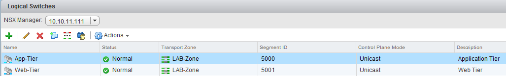 The first thing we want to do is enable routing between two logical switches. Therefore go to Logical Switches and create a second one, named: “Web-Tier”.